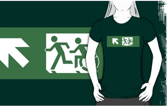 Accessible Exit Sign Project Wheelchair Wheelie Running Man Symbol Means of Egress Icon Disability Emergency Evacuation Fire Safety Adult T-shirt 180