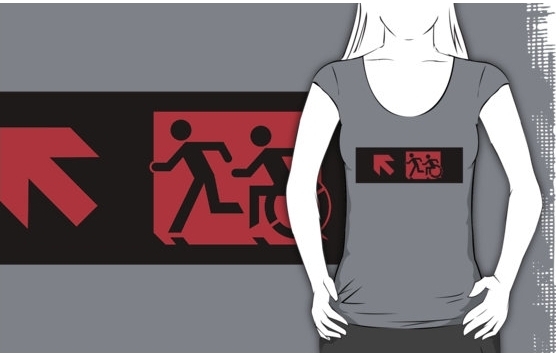 Accessible Exit Sign Project Wheelchair Wheelie Running Man Symbol Means of Egress Icon Disability Emergency Evacuation Fire Safety Adult T-shirt 184