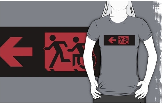 Accessible Exit Sign Project Wheelchair Wheelie Running Man Symbol Means of Egress Icon Disability Emergency Evacuation Fire Safety Adult T-shirt 189