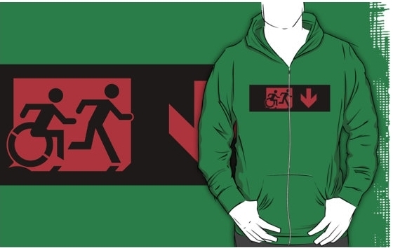Accessible Exit Sign Project Wheelchair Wheelie Running Man Symbol Means of Egress Icon Disability Emergency Evacuation Fire Safety Adult T-shirt 203