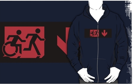 Accessible Exit Sign Project Wheelchair Wheelie Running Man Symbol Means of Egress Icon Disability Emergency Evacuation Fire Safety Adult T-shirt 204
