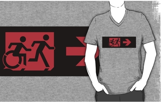Accessible Exit Sign Project Wheelchair Wheelie Running Man Symbol Means of Egress Icon Disability Emergency Evacuation Fire Safety Adult T-shirt 213