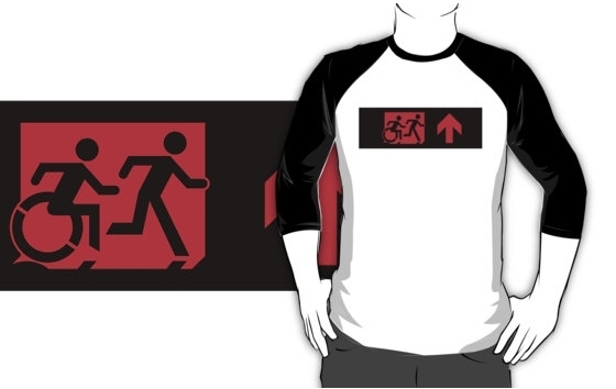 Accessible Exit Sign Project Wheelchair Wheelie Running Man Symbol Means of Egress Icon Disability Emergency Evacuation Fire Safety Adult T-shirt 215