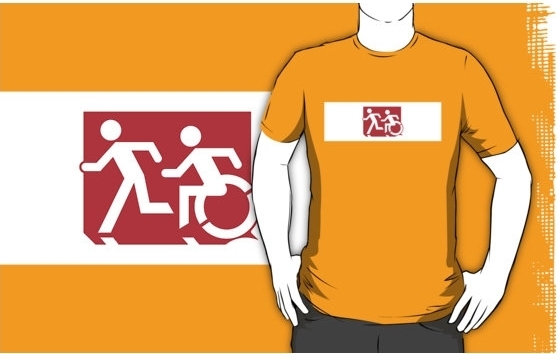 Accessible Exit Sign Project Wheelchair Wheelie Running Man Symbol Means of Egress Icon Disability Emergency Evacuation Fire Safety Adult T-shirt 232