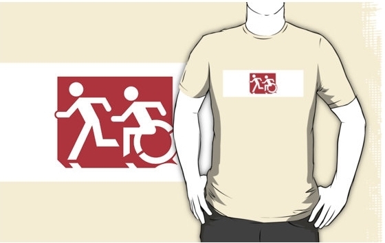 Accessible Exit Sign Project Wheelchair Wheelie Running Man Symbol Means of Egress Icon Disability Emergency Evacuation Fire Safety Adult T-shirt 233