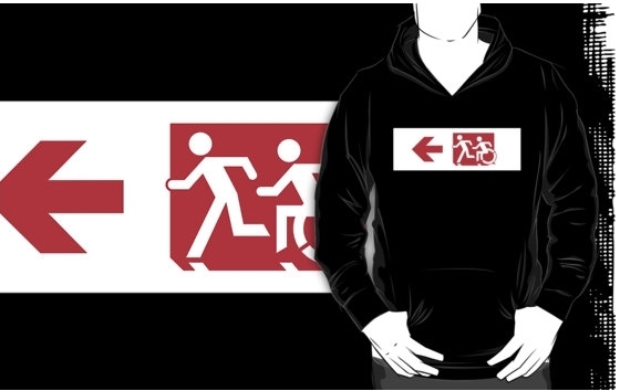 Accessible Exit Sign Project Wheelchair Wheelie Running Man Symbol Means of Egress Icon Disability Emergency Evacuation Fire Safety Adult T-shirt 255