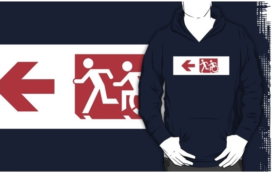 Accessible Exit Sign Project Wheelchair Wheelie Running Man Symbol Means of Egress Icon Disability Emergency Evacuation Fire Safety Adult T-shirt 256
