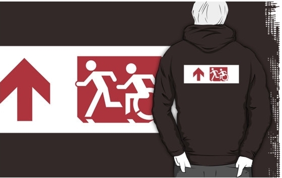 Accessible Exit Sign Project Wheelchair Wheelie Running Man Symbol Means of Egress Icon Disability Emergency Evacuation Fire Safety Adult T-shirt 262