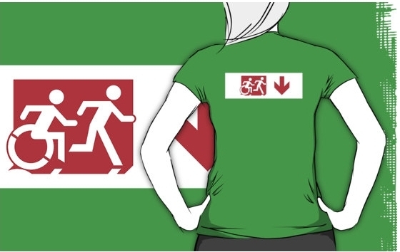 Accessible Exit Sign Project Wheelchair Wheelie Running Man Symbol Means of Egress Icon Disability Emergency Evacuation Fire Safety Adult T-shirt 276