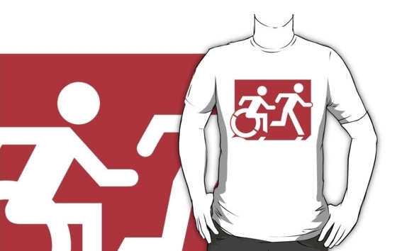 Accessible Exit Sign Project Wheelchair Wheelie Running Man Symbol Means of Egress Icon Disability Emergency Evacuation Fire Safety Adult T-shirt 291