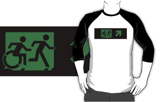 Accessible Exit Sign Project Wheelchair Wheelie Running Man Symbol Means of Egress Icon Disability Emergency Evacuation Fire Safety Adult T-shirt 292