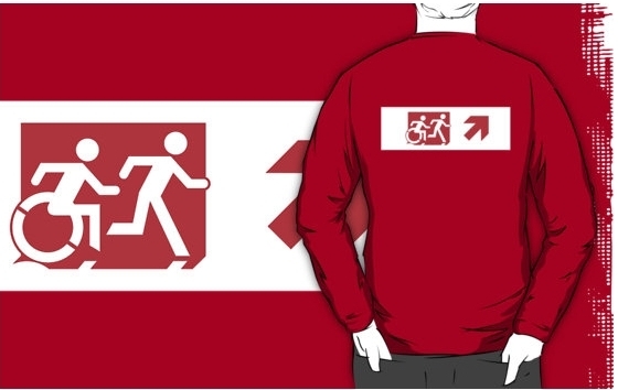 Accessible Exit Sign Project Wheelchair Wheelie Running Man Symbol Means of Egress Icon Disability Emergency Evacuation Fire Safety Adult T-shirt 295