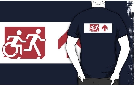 Accessible Exit Sign Project Wheelchair Wheelie Running Man Symbol Means of Egress Icon Disability Emergency Evacuation Fire Safety Adult T-shirt 307