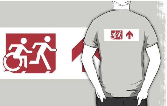 Accessible Exit Sign Project Wheelchair Wheelie Running Man Symbol Means of Egress Icon Disability Emergency Evacuation Fire Safety Adult T-shirt 310