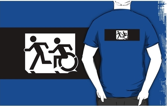 Accessible Exit Sign Project Wheelchair Wheelie Running Man Symbol Means of Egress Icon Disability Emergency Evacuation Fire Safety Adult T-shirt 312