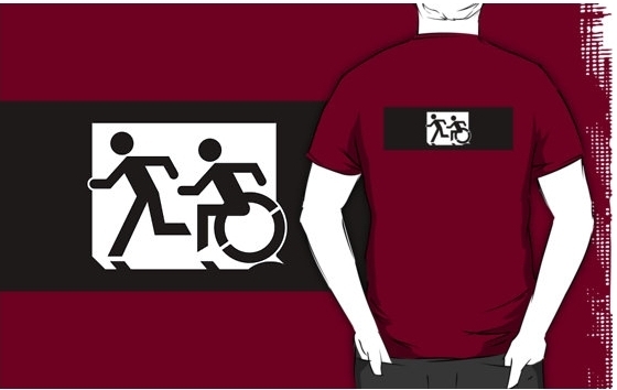 Accessible Exit Sign Project Wheelchair Wheelie Running Man Symbol Means of Egress Icon Disability Emergency Evacuation Fire Safety Adult T-shirt 314