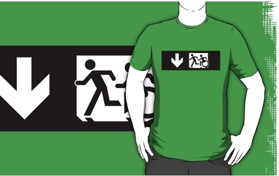Accessible Exit Sign Project Wheelchair Wheelie Running Man Symbol Means of Egress Icon Disability Emergency Evacuation Fire Safety Adult T-shirt 323