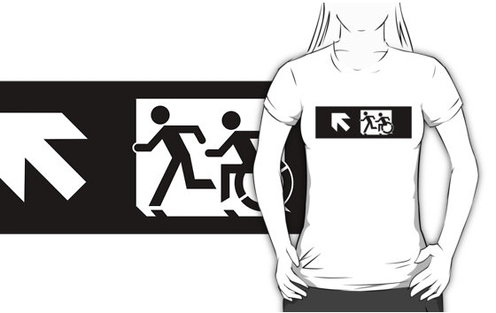 Accessible Exit Sign Project Wheelchair Wheelie Running Man Symbol Means of Egress Icon Disability Emergency Evacuation Fire Safety Adult T-shirt 329