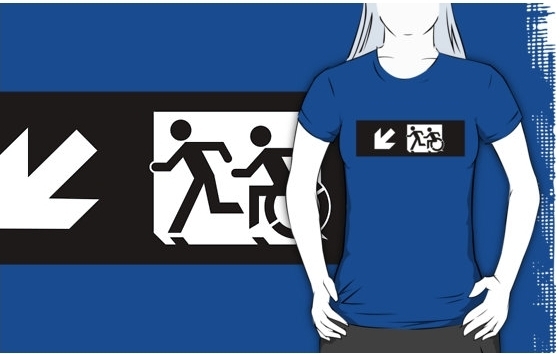 Accessible Exit Sign Project Wheelchair Wheelie Running Man Symbol Means of Egress Icon Disability Emergency Evacuation Fire Safety Adult T-shirt 335