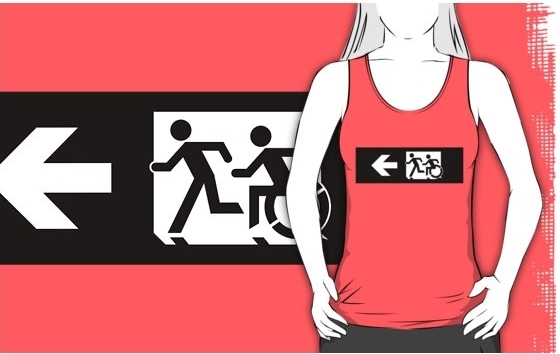 Accessible Exit Sign Project Wheelchair Wheelie Running Man Symbol Means of Egress Icon Disability Emergency Evacuation Fire Safety Adult T-shirt 345