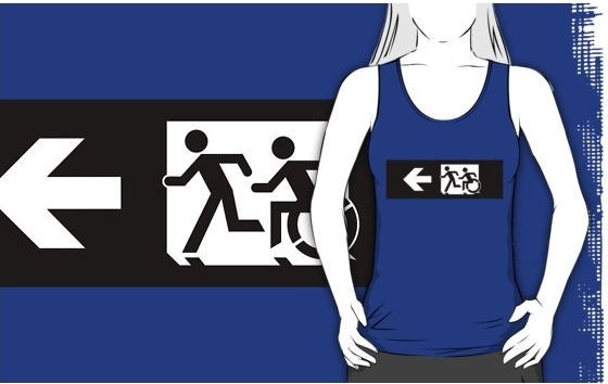 Accessible Exit Sign Project Wheelchair Wheelie Running Man Symbol Means of Egress Icon Disability Emergency Evacuation Fire Safety Adult T-shirt 347