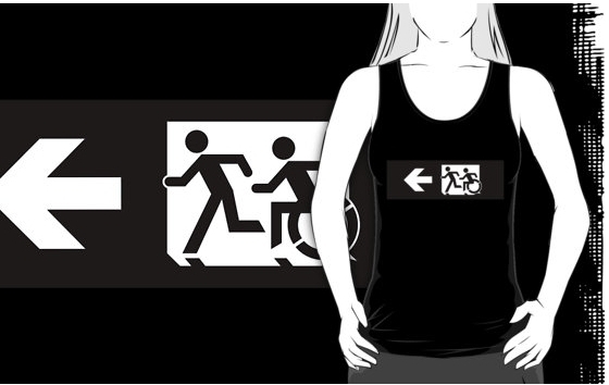 Accessible Exit Sign Project Wheelchair Wheelie Running Man Symbol Means of Egress Icon Disability Emergency Evacuation Fire Safety Adult T-shirt 348