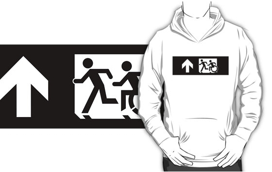 Accessible Exit Sign Project Wheelchair Wheelie Running Man Symbol Means of Egress Icon Disability Emergency Evacuation Fire Safety Adult T-shirt 349