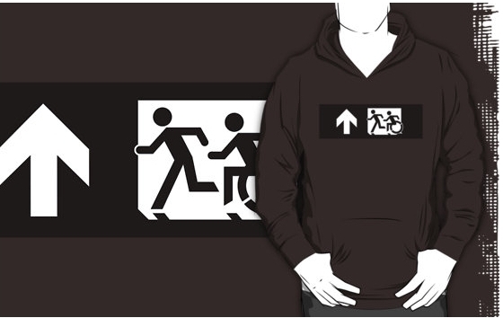 Accessible Exit Sign Project Wheelchair Wheelie Running Man Symbol Means of Egress Icon Disability Emergency Evacuation Fire Safety Adult T-shirt 355