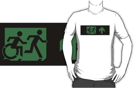 Accessible Exit Sign Project Wheelchair Wheelie Running Man Symbol Means of Egress Icon Disability Emergency Evacuation Fire Safety Adult T-shirt 364