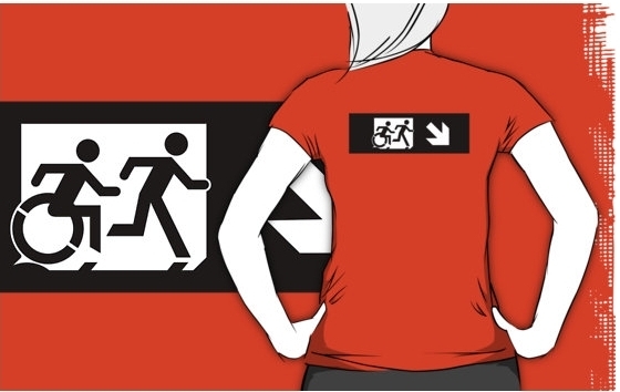 Accessible Exit Sign Project Wheelchair Wheelie Running Man Symbol Means of Egress Icon Disability Emergency Evacuation Fire Safety Adult T-shirt 375