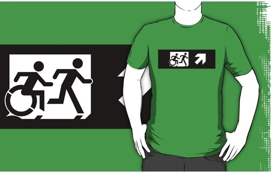 Accessible Exit Sign Project Wheelchair Wheelie Running Man Symbol Means of Egress Icon Disability Emergency Evacuation Fire Safety Adult T-shirt 380