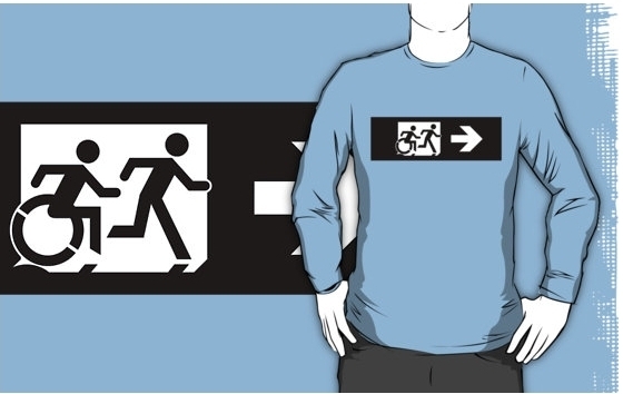 Accessible Exit Sign Project Wheelchair Wheelie Running Man Symbol Means of Egress Icon Disability Emergency Evacuation Fire Safety Adult T-shirt 382