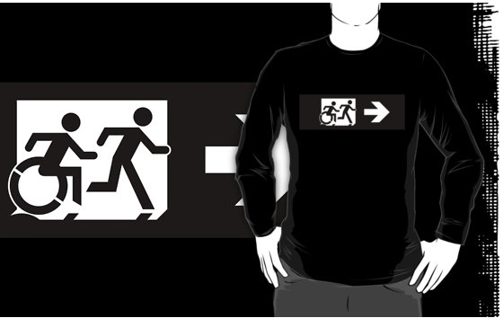 Accessible Exit Sign Project Wheelchair Wheelie Running Man Symbol Means of Egress Icon Disability Emergency Evacuation Fire Safety Adult T-shirt 386