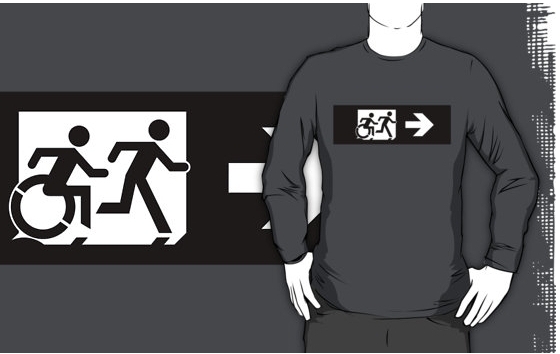 Accessible Exit Sign Project Wheelchair Wheelie Running Man Symbol Means of Egress Icon Disability Emergency Evacuation Fire Safety Adult T-shirt 387