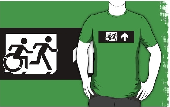 Accessible Exit Sign Project Wheelchair Wheelie Running Man Symbol Means of Egress Icon Disability Emergency Evacuation Fire Safety Adult T-shirt 390