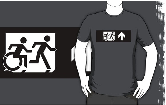 Accessible Exit Sign Project Wheelchair Wheelie Running Man Symbol Means of Egress Icon Disability Emergency Evacuation Fire Safety Adult T-shirt 391