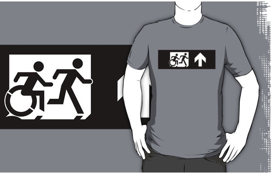 Accessible Exit Sign Project Wheelchair Wheelie Running Man Symbol Means of Egress Icon Disability Emergency Evacuation Fire Safety Adult T-shirt 392