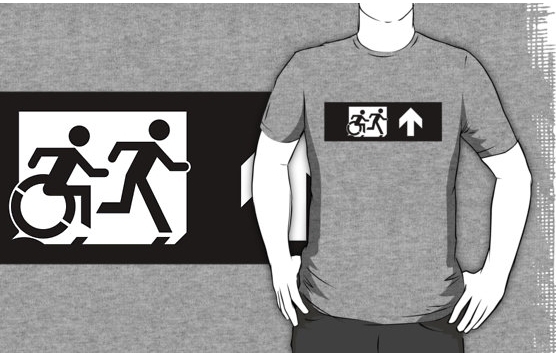 Accessible Exit Sign Project Wheelchair Wheelie Running Man Symbol Means of Egress Icon Disability Emergency Evacuation Fire Safety Adult T-shirt 394