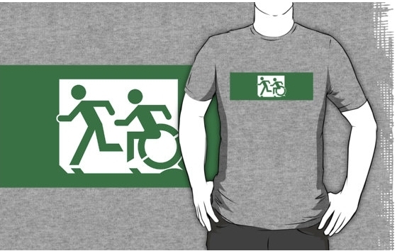 Accessible Exit Sign Project Wheelchair Wheelie Running Man Symbol Means of Egress Icon Disability Emergency Evacuation Fire Safety Adult T-shirt 395
