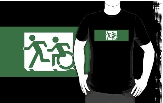 Accessible Exit Sign Project Wheelchair Wheelie Running Man Symbol Means of Egress Icon Disability Emergency Evacuation Fire Safety Adult T-shirt 398