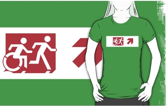 Accessible Exit Sign Project Wheelchair Wheelie Running Man Symbol Means of Egress Icon Disability Emergency Evacuation Fire Safety Adult T-shirt 401
