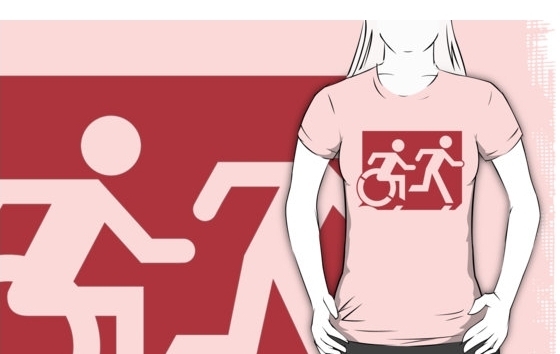 Accessible Exit Sign Project Wheelchair Wheelie Running Man Symbol Means of Egress Icon Disability Emergency Evacuation Fire Safety Adult T-shirt 415