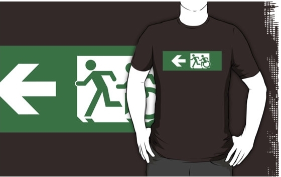 Accessible Exit Sign Project Wheelchair Wheelie Running Man Symbol Means of Egress Icon Disability Emergency Evacuation Fire Safety Adult T-shirt 423