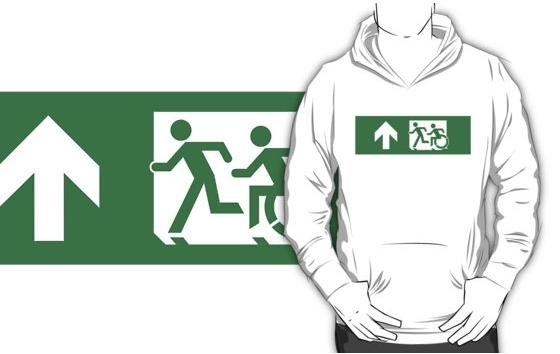 Accessible Exit Sign Project Wheelchair Wheelie Running Man Symbol Means of Egress Icon Disability Emergency Evacuation Fire Safety Adult T-shirt 431