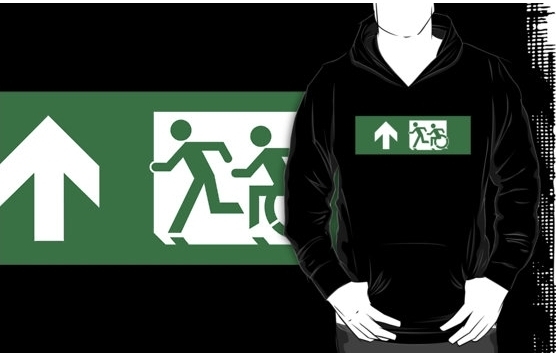 Accessible Exit Sign Project Wheelchair Wheelie Running Man Symbol Means of Egress Icon Disability Emergency Evacuation Fire Safety Adult T-shirt 433