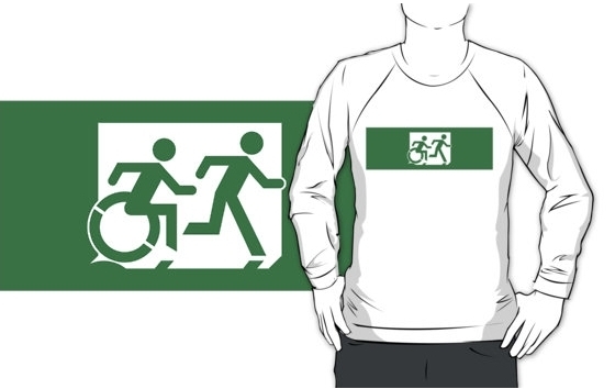 Accessible Exit Sign Project Wheelchair Wheelie Running Man Symbol Means of Egress Icon Disability Emergency Evacuation Fire Safety Adult T-shirt 437