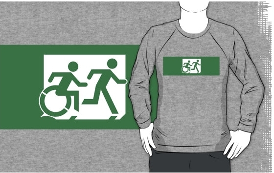 Accessible Exit Sign Project Wheelchair Wheelie Running Man Symbol Means of Egress Icon Disability Emergency Evacuation Fire Safety Adult T-shirt 444