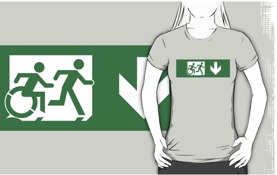 Accessible Exit Sign Project Wheelchair Wheelie Running Man Symbol Means of Egress Icon Disability Emergency Evacuation Fire Safety Adult T-shirt 446