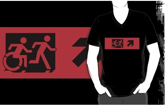 Accessible Exit Sign Project Wheelchair Wheelie Running Man Symbol Means of Egress Icon Disability Emergency Evacuation Fire Safety Adult T-shirt 452