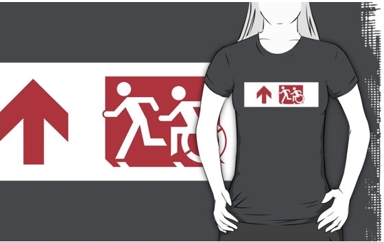 Accessible Exit Sign Project Wheelchair Wheelie Running Man Symbol Means of Egress Icon Disability Emergency Evacuation Fire Safety Adult T-shirt 453